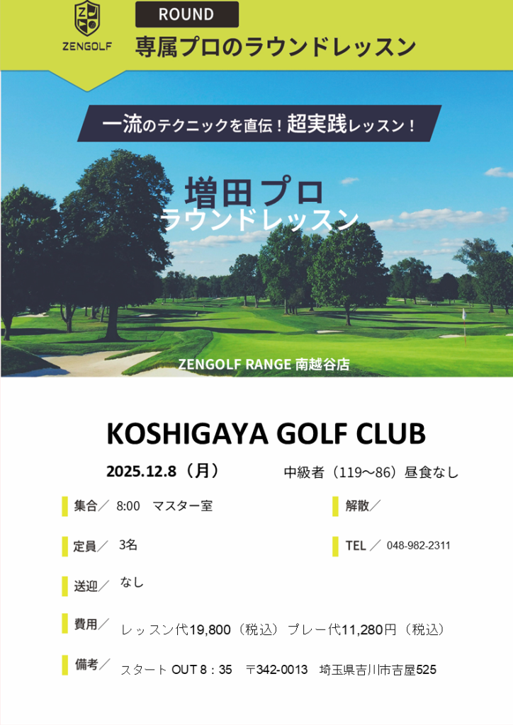 12月15日(月)増田プロのラウンドレッスンのお知らせ