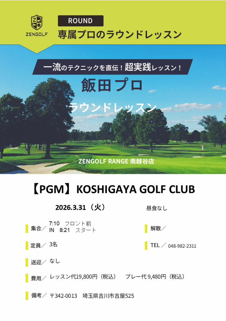 3月31日(火)飯田プロラウンドレッスンのお知らせ