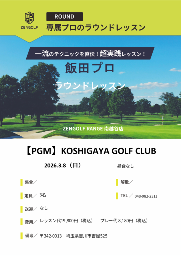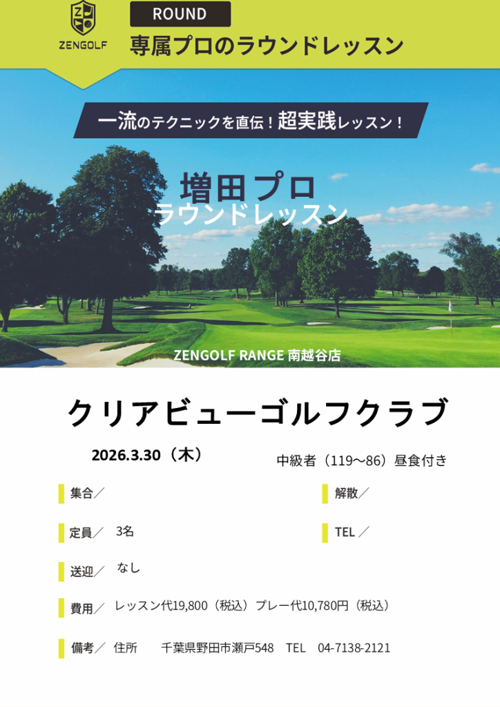 3月30日(月)増田プロラウンドレッスンのお知らせ