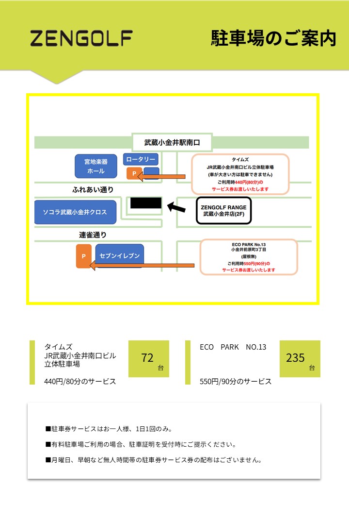 | 店舗名 | ZENGOLF RANGE 武蔵小金井店 |